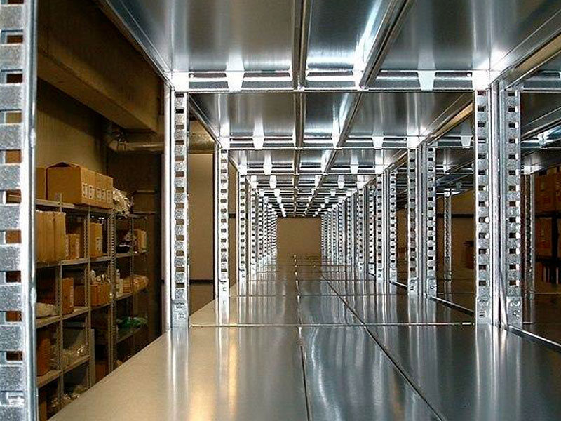 Scaffalature Ufficio leggere zincate con sistema di montaggio ad incastro, senza l’utilizzo di bulloni e viti.